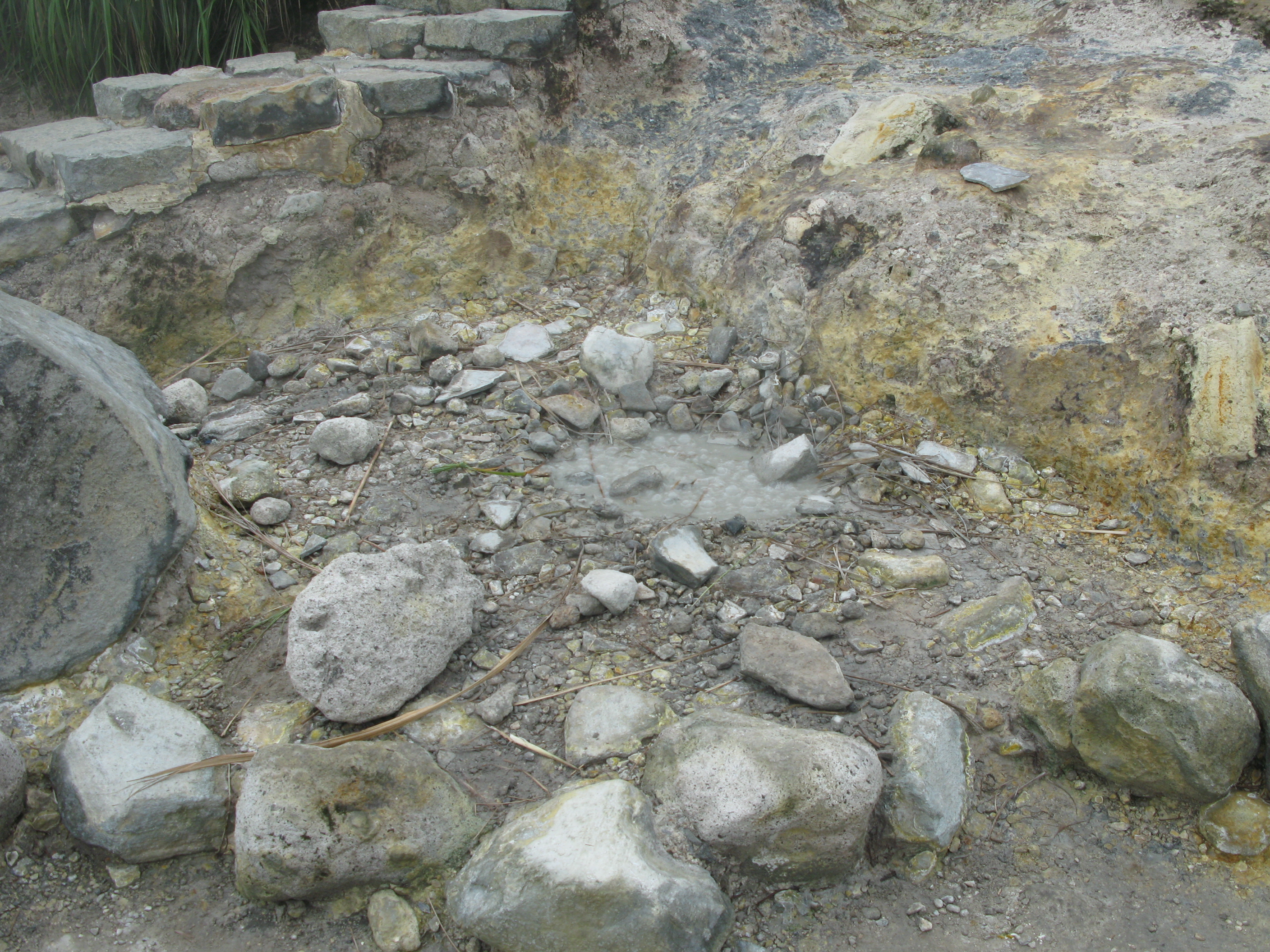 ただで小油坑を離れる訳にもいかないので周辺を散策。硫黄の香りがするスポット発見。